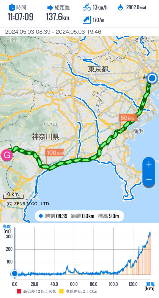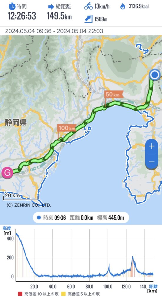 初日は終盤の山がきつかったです。御殿場は特に自転車で行くことが想定されていない気がしました笑