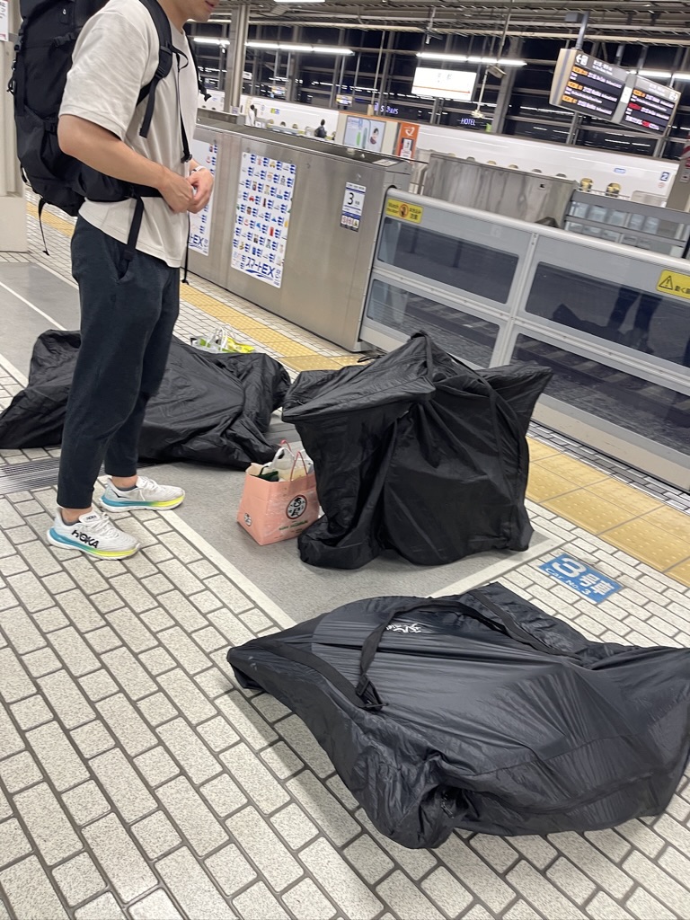 自転車は輪行袋に入れて新幹線に乗せて帰りました。