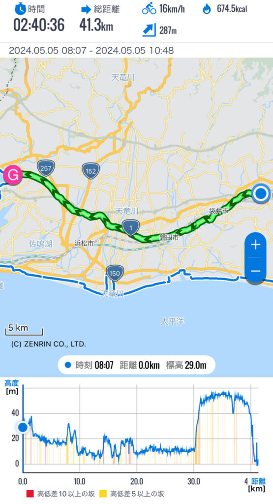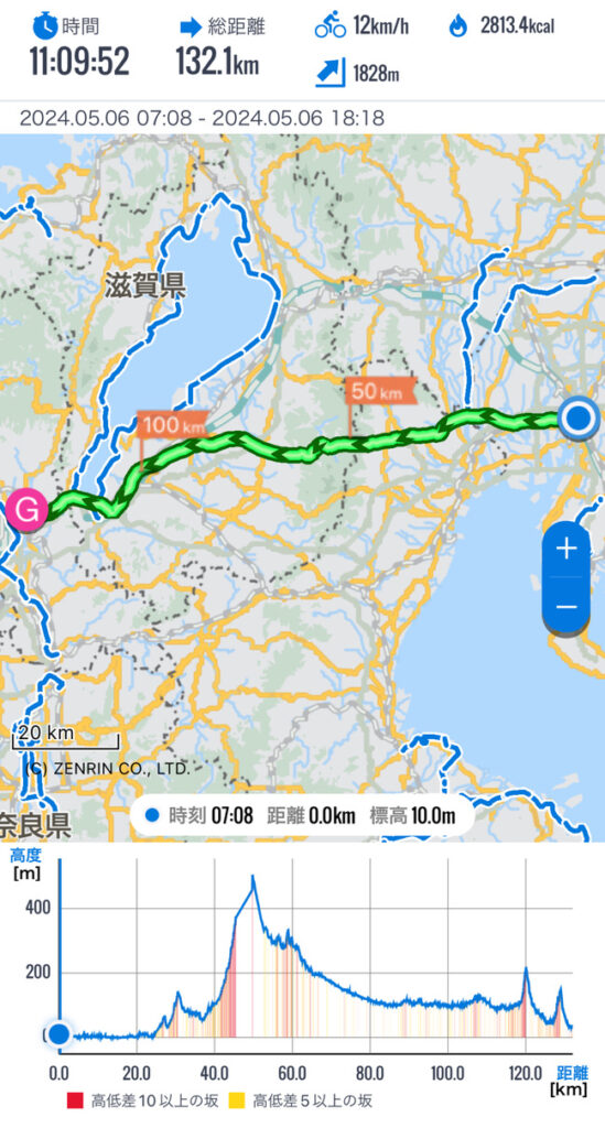 アプリでの記録2つに分かれちゃったのでどっちも載せます!3日目は山道が(比較的)少なく、ひつまぶしをモチベーションに漕ぎ続けることができました。